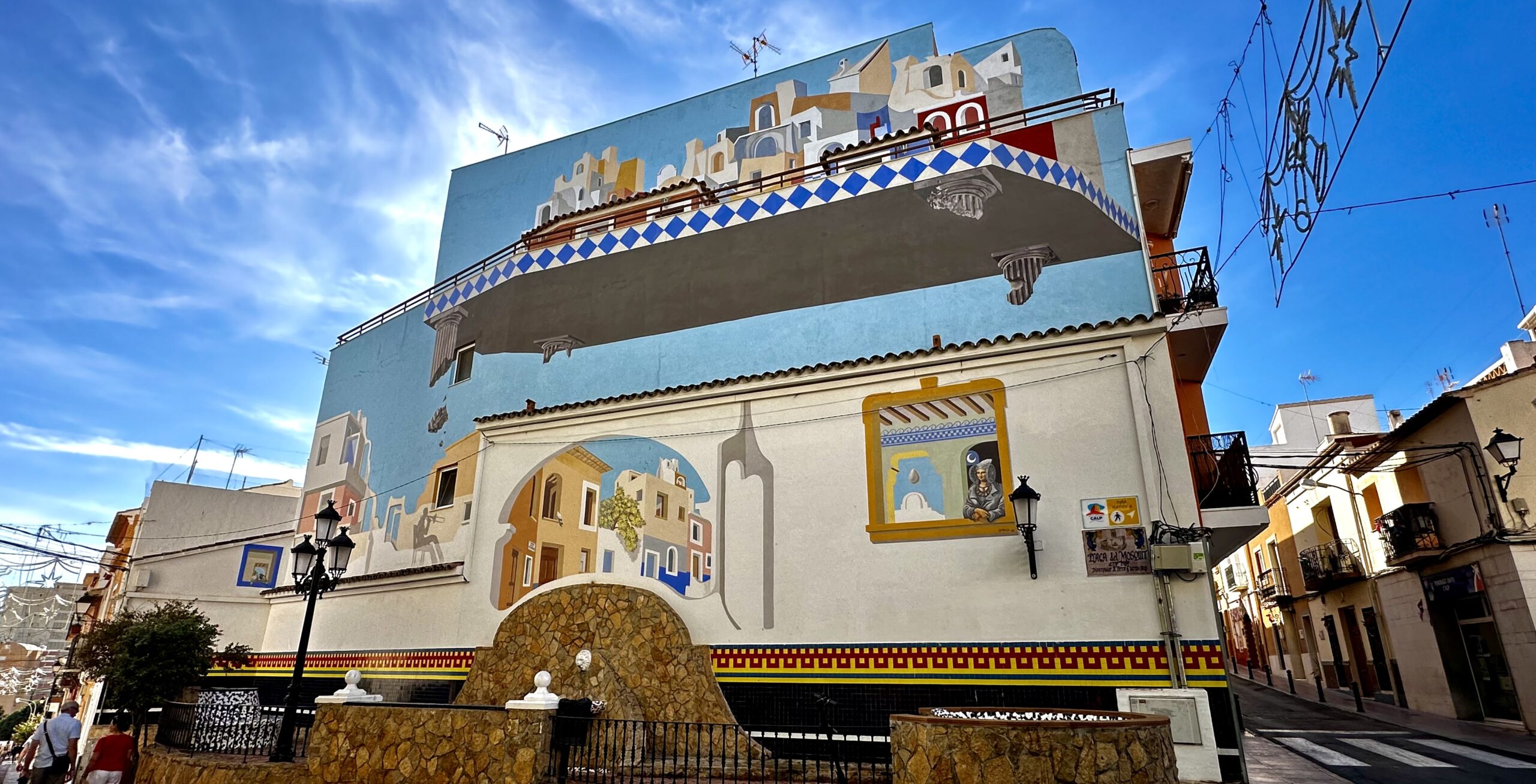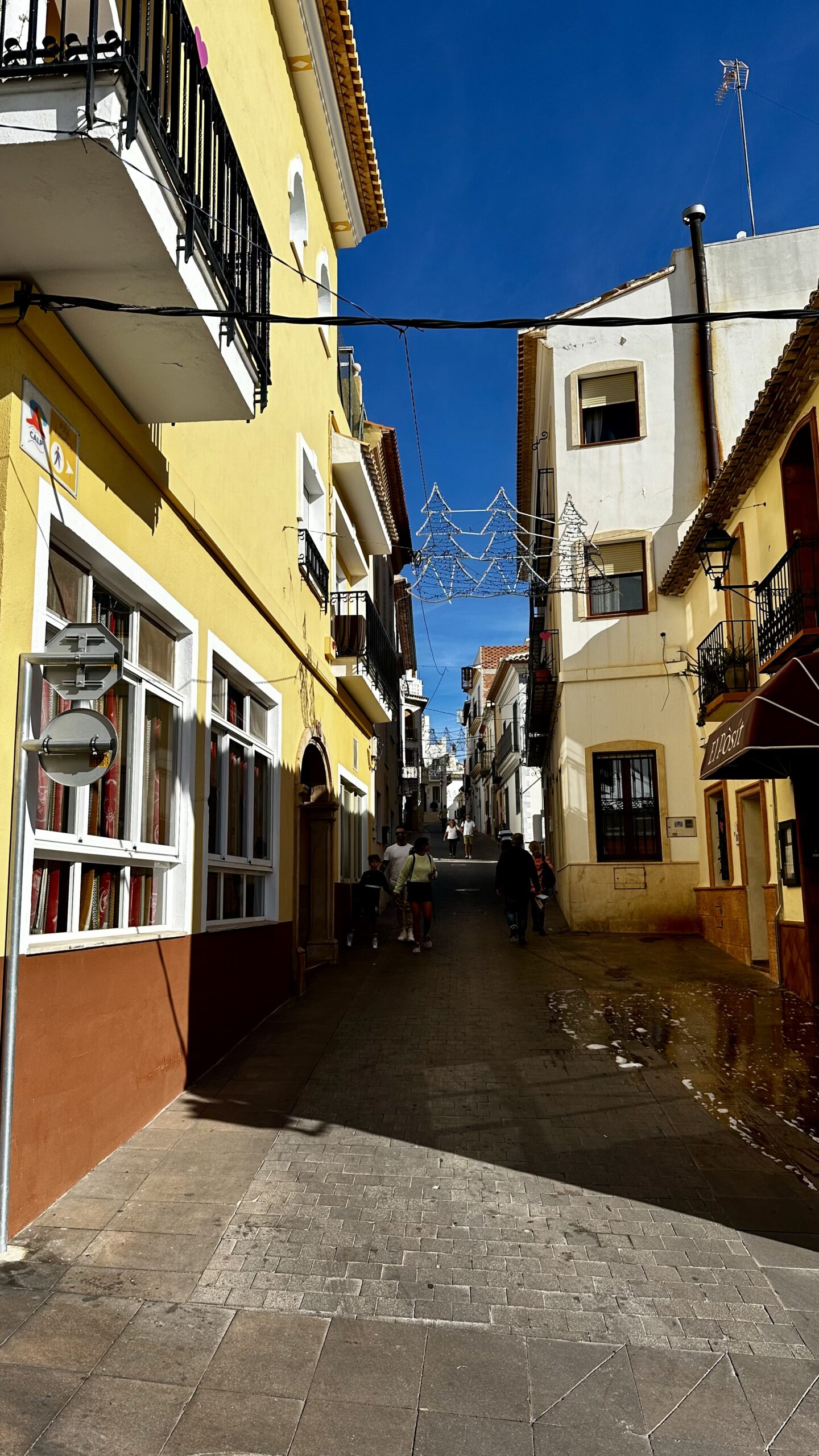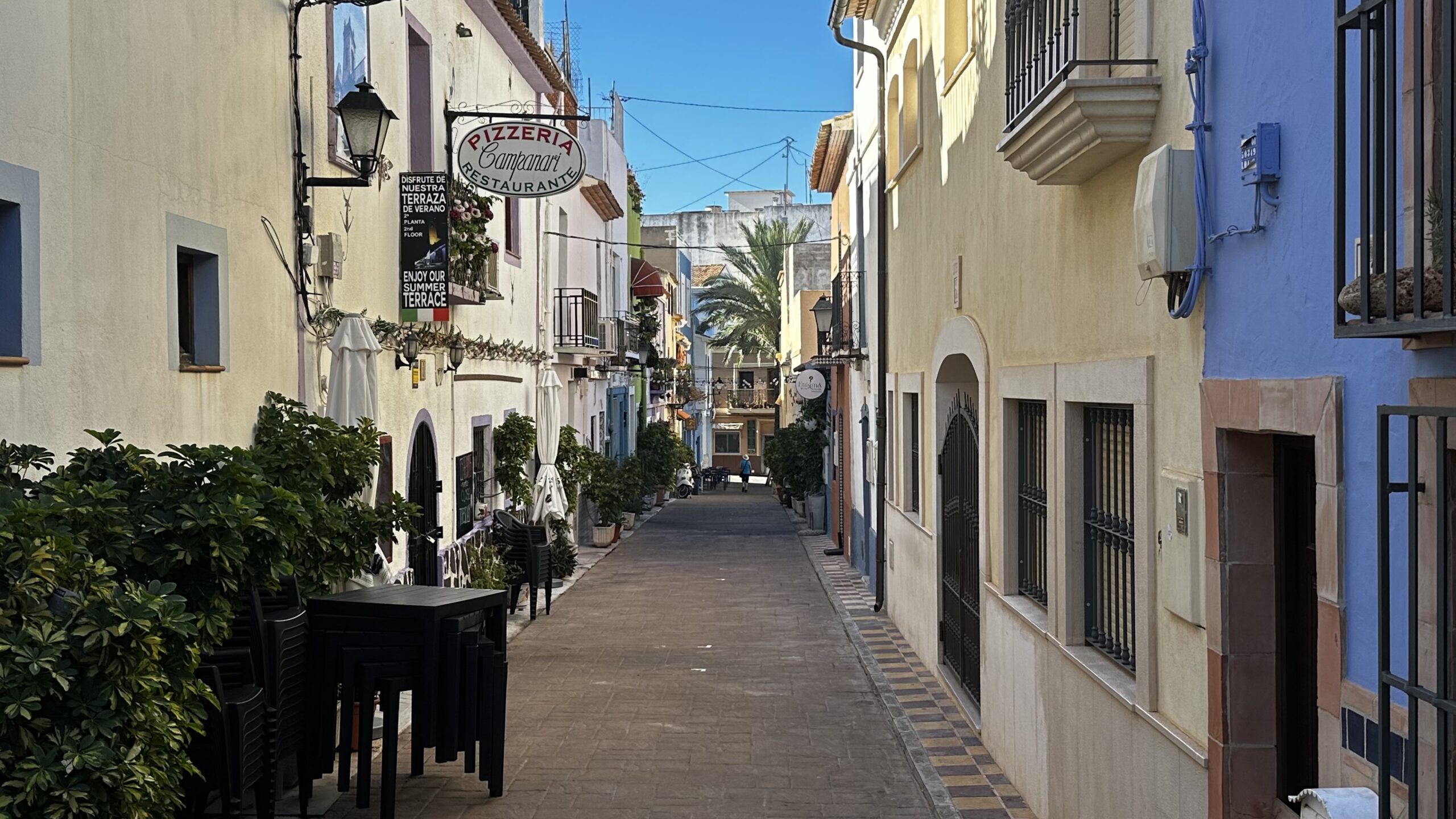 Quasi eine Bucht weiter Richtung Benidorm ein kleiner Ferienort. An der Küstenlinie eher ein kleines Städtchen mit allen erdenklichen Einkaufsmöglichkeiten wie Boutiquen, Galerien etc. In der ‚Oberstadt‘ ein eher andalusisch anmutendes Bergdorf. Rund um die Kathedrale >Església La Mare de Déu del Consol. Mittlerweile ein Touristenmagnet. Vor 20 Jahren noch besinnlich ruhig😳. Trotz den Nachsaison Mitte November waren die Tische der Kneipen auf dem Marktplatz voll besetzt. Entlang der steil aufsteigenden Gassen zur Kathedrale reihen sich an der Nordseite Boutique, Kunsthändler, Handwerkskunst… und Restaurants. sehr viele italienisch angehaucht. An der Westseite haben sich eher Boutiquen angesiedelt. Auf jeden Fall hat man einen herrliche Ausblick über das Meer. Bis rüber zum Ifach bei Calpe – aber auch zu den ‚Wolkenkratzern‘ an der Playa von Benidorm.