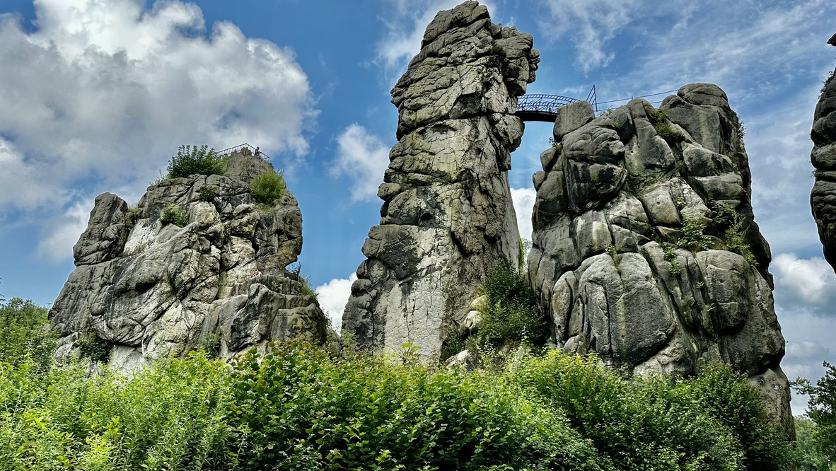 Was fällt dem Leser denn dabei so ein? Klar, zunächst wohl sicher die >Weser und der >Teutoburger Wald mit Hermann dem Cherusker und dem >Hermannsdenkmal und dann natürlich die >Schlacht am Teutoburger Wald. Und dem einen oder anderen vielleicht auch der Erinnerungsstein, daß hier 1882 der deutsche > CVJM gegründet wurde.Was gibt’s noch? Natürlich die > Externsteine. Eine kulturdenkmalgeschützte Natursehenswürdigkeit. Und somit ein Muß für den Weser-Urlauber.