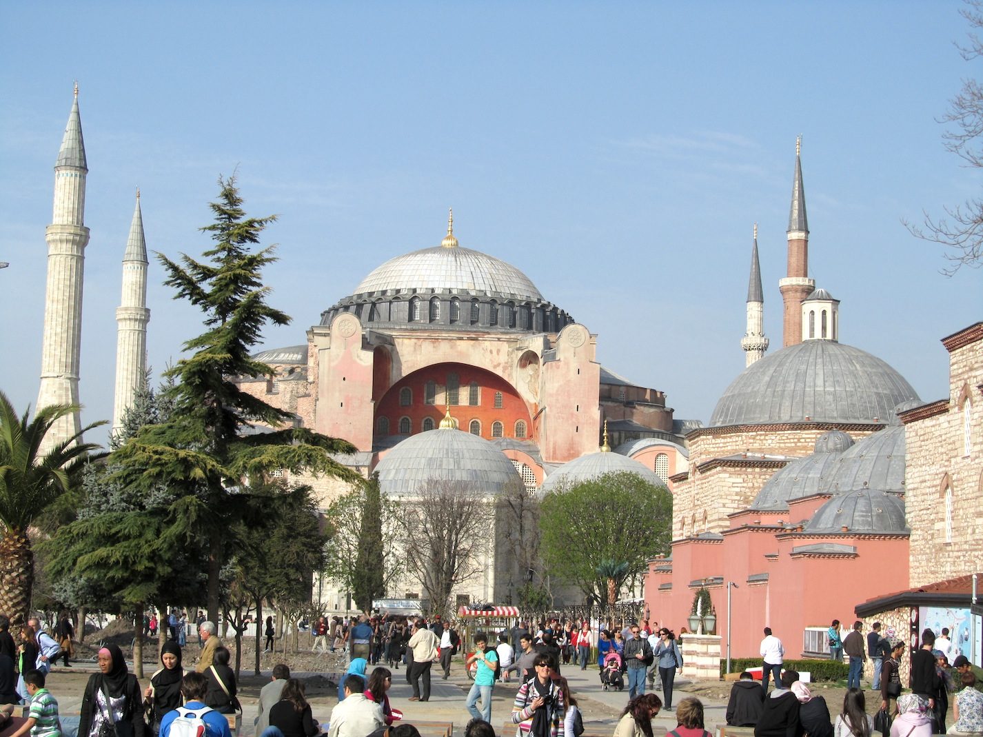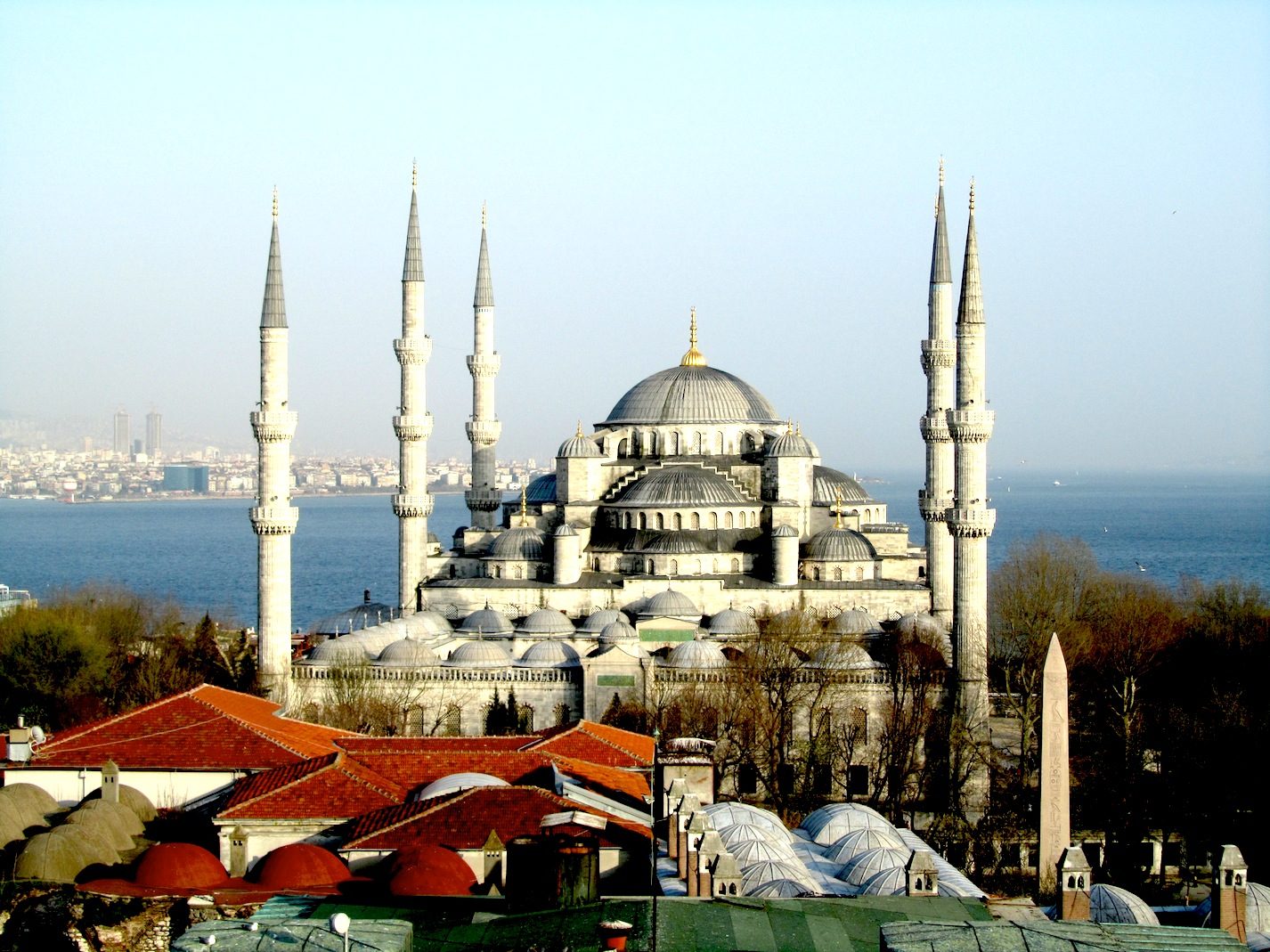 No.1: Zunächst der >Topkapi-Palast, kurz nach der Eroberung Konstantinopels erbaut. Eine orientalische Sultan-Stadt für sich. No.2: Direkt nebenan die >Hagia Sophia (Kirche der Heiligen Weisheit), 537 nChr. von Kaiser Justinian geweiht, im 15.Jhdt. als Moschee „umgebaut“, heute ein Museum. Und die dritte in der Reihe am Marmara Meer:  No.3: die  >Blaue Moschee/Sultan Ahmed Moschee, im 16.Jhdt. nChr. erbaut im Auftrag Sultan Ahmed I. Ihre blauen Keramik-Fliesen und blau-getönten Fenster gaben ihr den Namen. Beide sakralen Bauwerke sind ganz einfach „gigantisch-schön“ und beeindruckend.