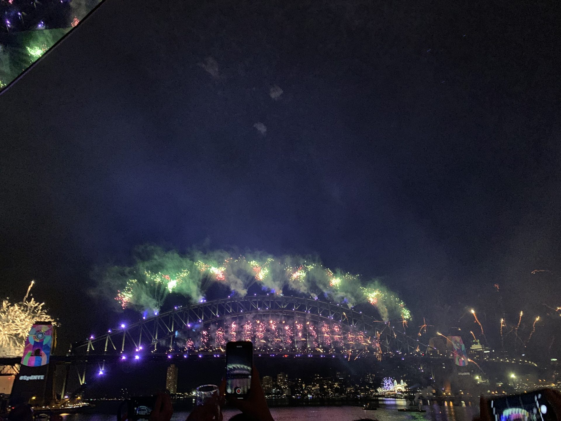 – das war das Tüpfelchen auf dem ‚i‘ unseres Neuseeland-Trips. Einmal im Leben! Die Stadt befindet sich an diesem Tag im Ausnahmezustand. Ab 11.00 Uhr sind alle Zufahrten und Zugänge zur Hafenregion hermetisch abgeriegelt. Selbst U-Bahn fährt bzw. hält nicht mehr in diesem Areal. Je näher dann der Abend rückt, desto engmaschiger wird das Absperrnetz. Ab ca.13.00 dürfen auch Fussgänger nur in entweder ausgewiesene Bereich oder mit ‚Eintrittskarte‘. Wir hatten uns die Operngala incl. Sylvesterfeier auf dem Operndach gegönnt. Das Vorfeld der Oper glich schon den ganzen Tag einem riesigen Campingplatz. Je früher man seinen Claim abesteckt hatte, desto sicher konnte man einen garantiert guten Platz auf das Feuerwerk sichern. Und Feuerwerk gab es gleich zwei. Das erste um 22.00 für die Kinder und dann auf die Sekunde 24.00 über dem gesamten Gebiet Darling Harbour bis Opera House und dem benachbarten Botanical Garden. Das wohl gewaltigste Feuerwerk ever. Ohne Pause von links bis rechts. Siehe auch Video auf der Hauptseite.