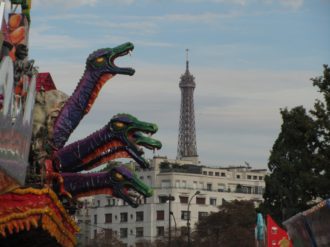 Und ebenfalls ganz am Rand des Bois war „Kirmes“. Kettenkarussell im Bois mit Blick auf Tour Eiffel oder die Bürotürme in Défense.  Paris-Besucher was willst Du mehr.  Und ein gediegenes Abendessen im 15. Arr., gehört zur Tradition wie der Sonntag-Morgen-Bummel über den Markt unter den U-Bahn-Bögen auf dem Bd. de Grenelle mit Pasteten vom  Feinsten, Käse und Rotwein um auf der Heimfahrt nicht zu verhungern 😊