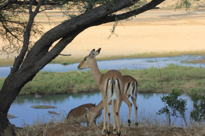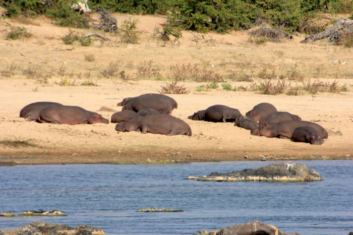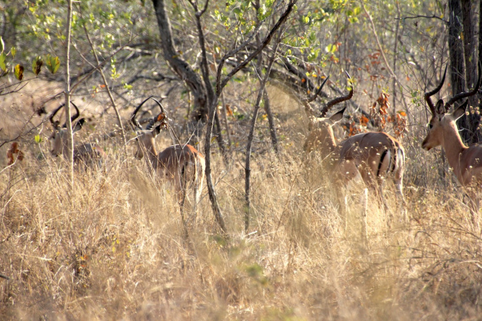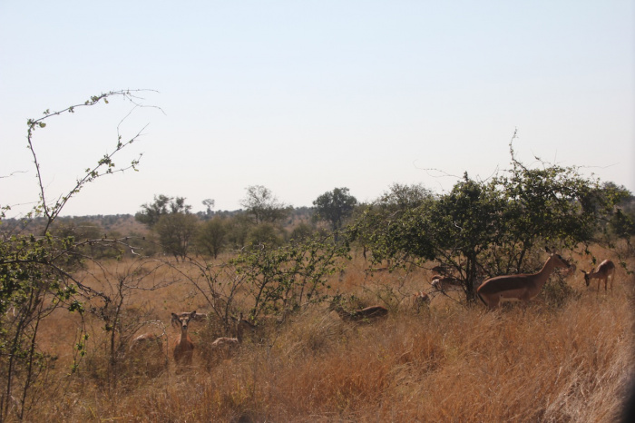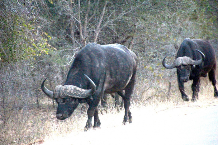 -> Elefanten -> Nashörner -> Hippos -> (Kaffern)Büffel -> Elands/Elenantilopen -> Gnus -> Zebras -> Impala -> Steenbocks